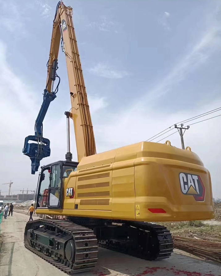 挖掘機打樁臂一般適用于河道護堤,深基坑支護,建筑地基,鐵路公路軟地基解決等工程中,可打拔鋼板樁,水泥樁、鋼軌樁、鐵板、H鋼。并可在市區內施工,低噪音,符合城市及環保標準。